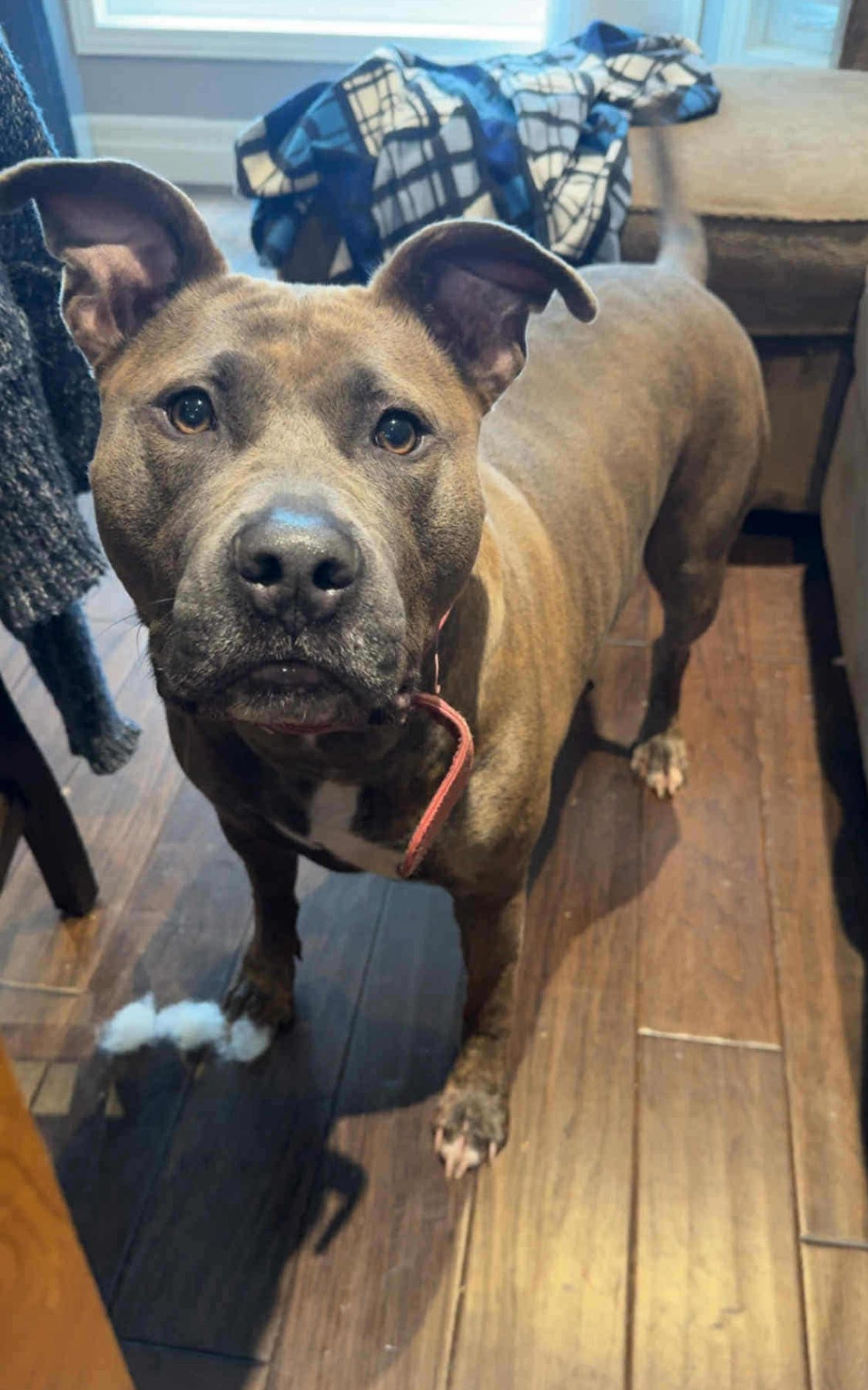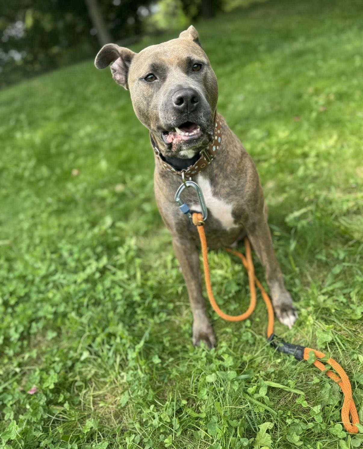 At 3 years old, Andy is a big, beautiful bundle of enthusiasm who believes life’s best moments involve toys, treats, and people to love. She dances with excitement when she finds a bone, greets her friends with full-body wiggles (and maybe a little drool), and is always ready to carry her own leash though she’s still perfecting her manners when those squirrels appear!