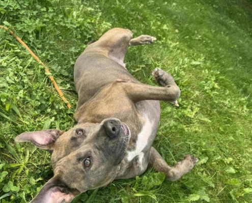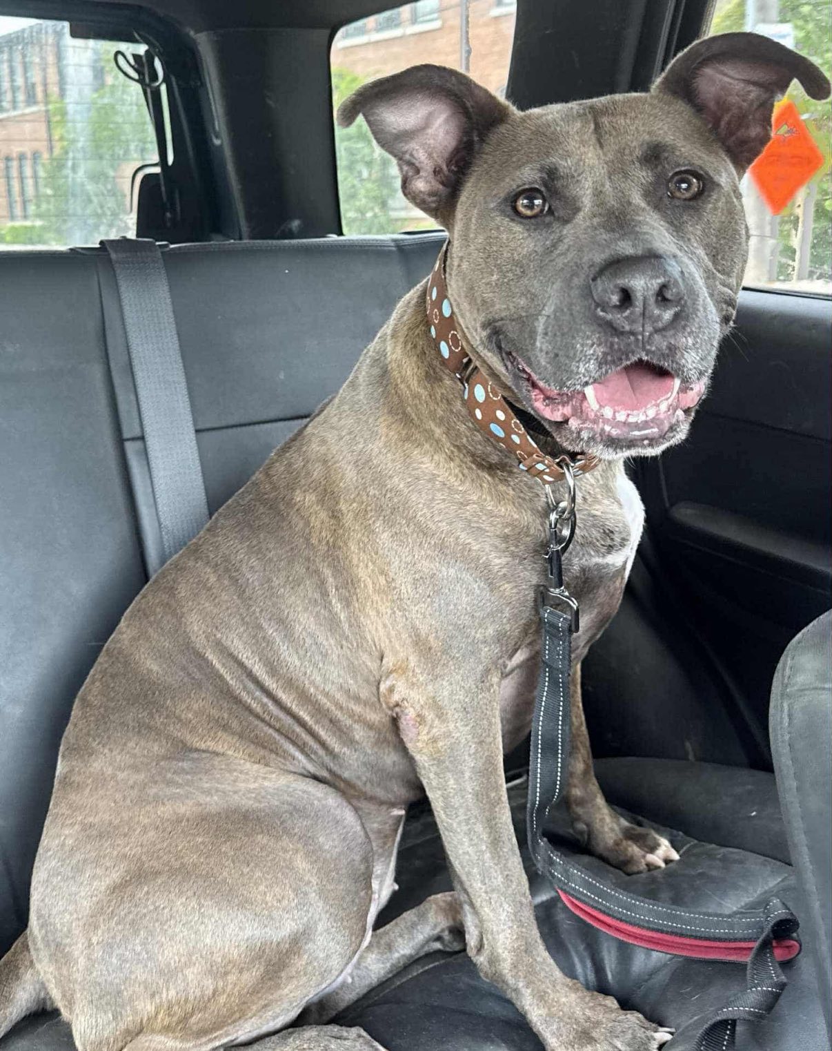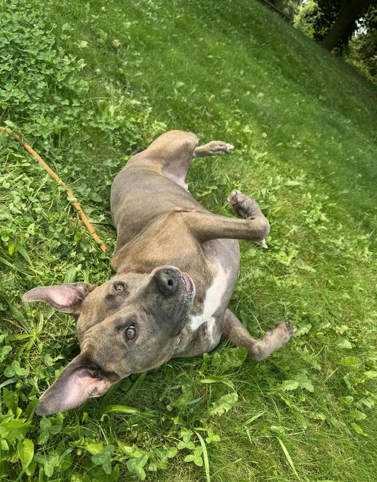 Andy’s social and confident nature makes her a great companion for someone who appreciates a little sass and a lot of heart. She does well with other dogs after slow introductions and tends to pair best with laid-back males who don’t mind letting her take the lead she knows what she wants, and we love her for it. She’s also crate trained, smart, and loves to be part of the action, but she’s just as happy to lounge around once she’s had her daily play and snuggle time.