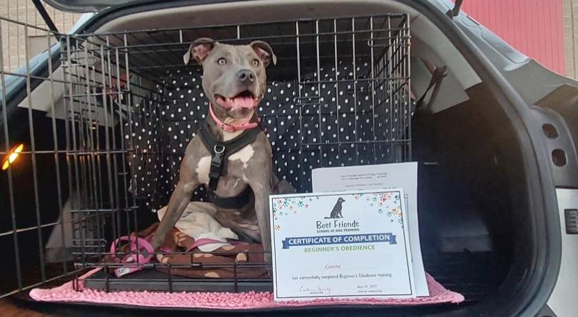 - Crate trained + housebroken (just give her a little adjustment time)